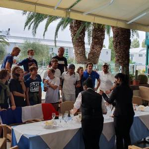 Relativamente al cibo non ci sono parole per descrivere la varietà di piatti, antipasti a volontà con soluzioni gastronomiche di tutti i tipi, dal pesce ai crudi e salsine varie; una vera gioia per il palato. Anche il servizio ai tavoli è gestito con cura e attenzione e in particolare vogliamo ringraziare Gloria, Giorgio e Sofia che sono stati veramente bravi e professionali oltre che pazienti e disponibili.